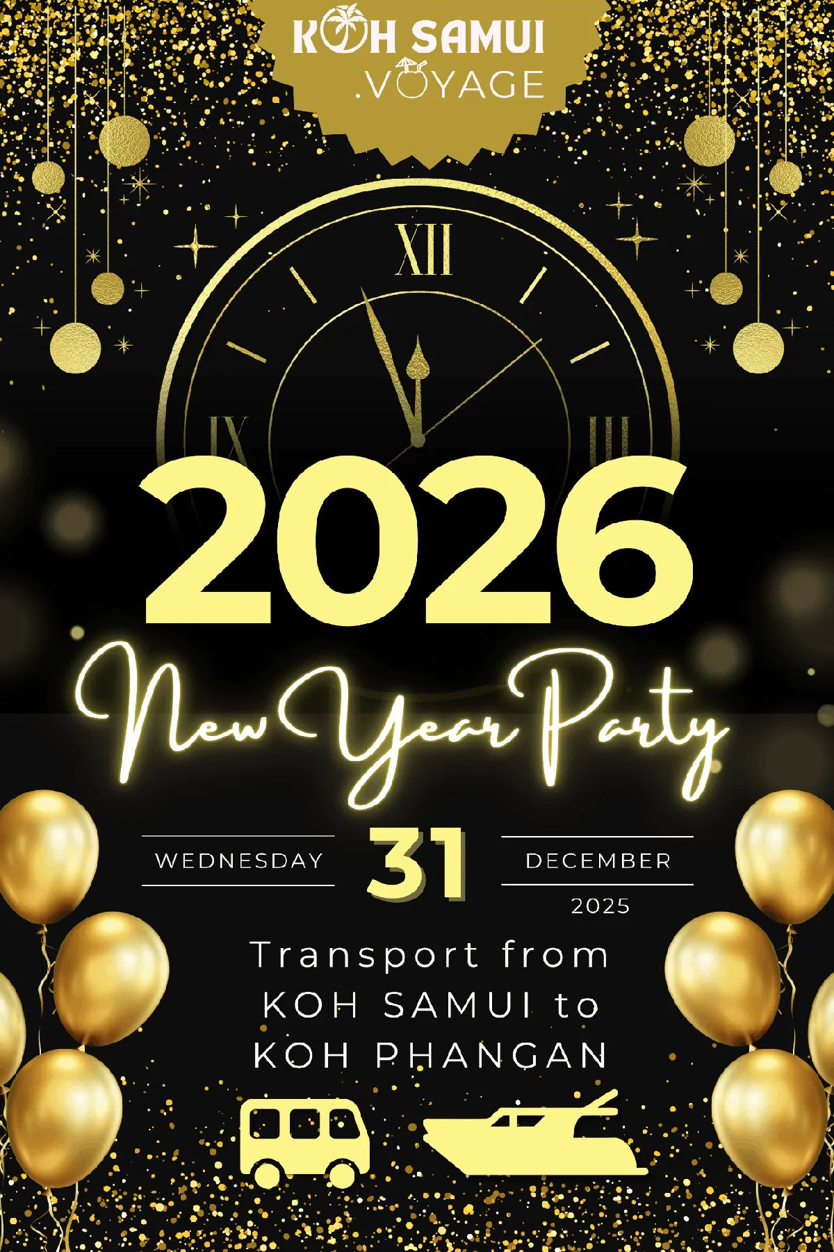 Soirée Nouvel An 2026 | Transport Koh Samui - Koh Phangan (Haad Rin), Pick Up Hôtel Inclus